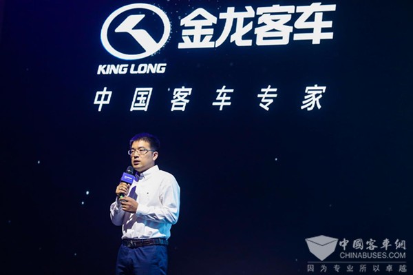 金龙客车工程研究院副院长苏亮讲解龙威新一代产品