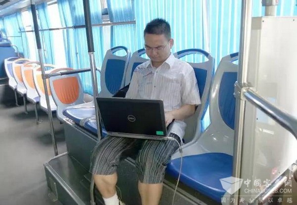 炎炎夏日里,55路公交车成了我们的战场。为了掌握不同工况下的汽车运行情况,团队成员们一整天都要闷在公交车内,采集不同的数据。频繁的跟车试验,让清石广场到向阳广场这条线路,成为了大家最熟悉的风景。