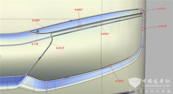车灯犹如眼睛般重要,更会直接影响到车辆造型的整体美观度。为使灯具和装饰件搭配更加合理,让人看起来更加舒服,龙威Ⅱ代的前大灯装饰件长度控制在了200cm以内,细节上,前大灯与装饰件的间隙统一保持在6.03mm左右。
