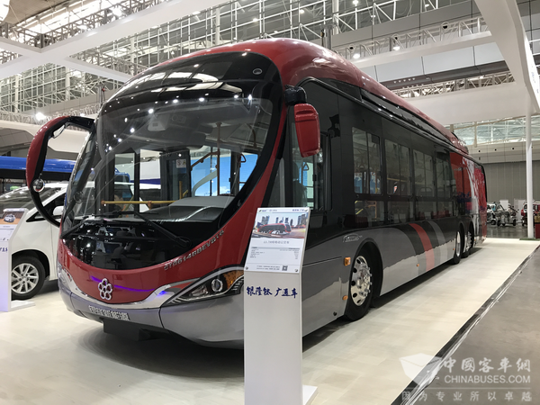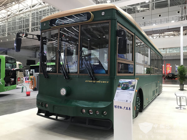亮相展会的银隆12米纯电动观光铛铛车近年来成为城市观光旅游的首选用车之一。该车以复古典雅的外观与银隆钛核心技术为卖点,搭载银隆钛酸锂电池,具备长寿命、耐宽温、高安全性等特点,满电状态可以续驶100公里以上。全车配置有LED显示屏、车辆视频监控、GPS定位、WiFi、空气净化装置等设备,在满足车辆运营基础性能的同时全方位提升了乘客的乘坐体验。目前该车型已在北京、西安、珠海、呼和浩特等十余个城市运营,成为了观光旅游中的一道靓丽风景线。
