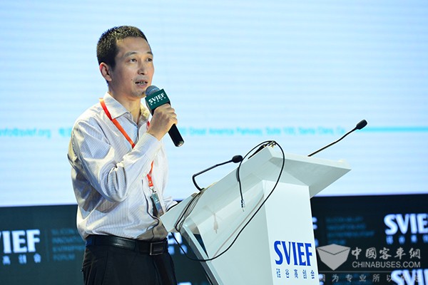 在15日上午的论坛中,银隆新能源天津产业园常务副总经理王怀斌登台并发表了以"绿色交通改变社会交通形态"为题的主旨演讲。王怀斌表示:"目前整个绿色交通是我们目前国内国际上非常关注的领域。绿色交通不仅仅是交通运输,也是如何实现社会资源的交通和融合。"