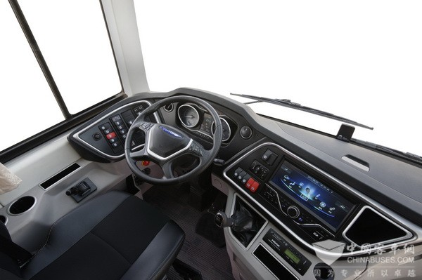不仅如此,ZK6128HQ还配有12.3英寸集成中控,可支持触摸及按键两种操作方式,同时集成空调、除霜、水暖、音响、导航、蓝牙和车联网等多项功能,将智能化操控体现得淋漓尽致。