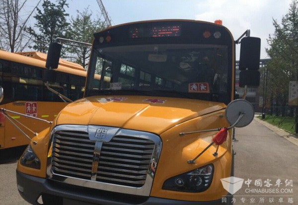 据悉,南京金陵中学河西分校启用的这批新型校车为中通校车,前脸比普通的校车更突出,保险杠也更高,而且更加厚实,这种校车的防撞性能表现得更突出;除此之外,车厢内学生座椅的钢板也都做了加厚设计,一切设计都从安全方面考虑。这批校车,车身外观拥有“醒目的黄色,胖胖的车身,长长的 ‘鼻子’”,因而这批新型校车还有个可爱的名字,叫做——“长鼻子”校车。