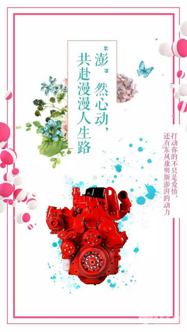 国际大牌发动机康明斯与中国的合资企业东风康明斯在其产品主打色“红色系”的基础上,辅以柔和的马卡龙色系,推出了“共赴漫漫人生路,‘澎’然心动”的海报。