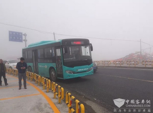 为进行爬坡性能测试,试用车向海拔4298米折多山发起挑战。挑战线路从新城到折多山,海拔落差达1678米,单程32公里,平均每公里52.4米的垂直落差。乘坐22人的试用车再次出发,成功登上折多山山顶,并返回新城,再次完成挑战。全程行驶64公里,电量从67%到54%,爬坡性能在国内一流纯电动客车中实属最强。