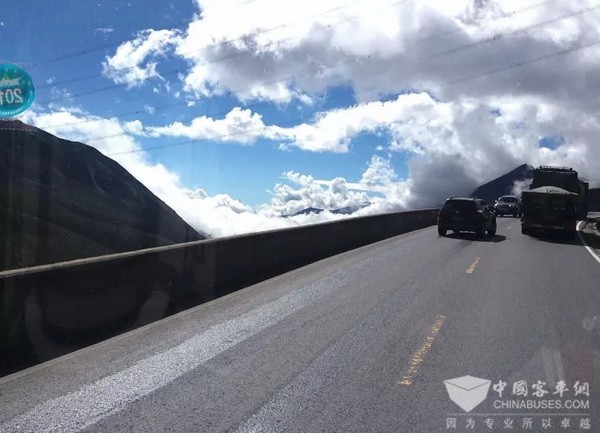 从市政府出发,途中有翻越折多山的盘山公路,也有坑洼不平,路况特差的路段(如图所示)。中车电动8米纯电动客车一路前行,动力性能一点不输同路行驶的卡车和燃油大巴。