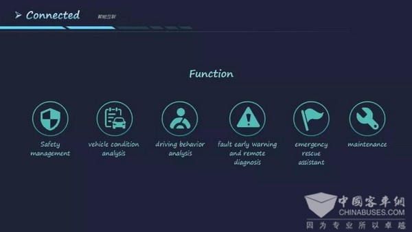 中车电动推出云智通智能管理系统,是基于大数据分析、物联网技术,整合“人”、“车”、“线”的智能运营管理工具,对车辆信息数据进行采集、传输、存储、分析和展现,可提供实时的安全管理、车况分析、驾驶行为分析、故障预警与远程诊断、应急救援助理、维保等服务。