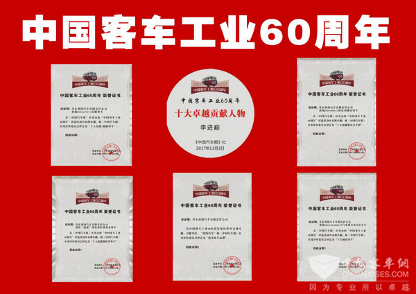 为纪念中国自主生产客车60周年,对中国客车工业60年来的成果进行梳理和表彰,2017年11月3日,由《中国汽车报》社举办的“中国客车工业60周年”评选活动颁奖典礼在澳门威尼斯人金光会展会议厅西西里厅隆重举行,细数我国客车行业的发展历程,见证中国制造的累累硕果。