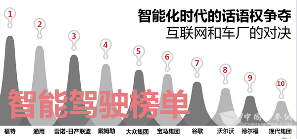 最近,国际市场研究机构 Navigant Research 给出了一份智能驾驶榜单,榜单显示,拥有113年历史的福特汽车荣登榜首,紧随其后的是通用,前五名当中的另外三家分别为雷诺-日产联盟、戴姆勒和大众。