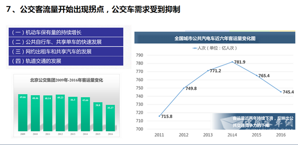 7、公交客流量开始出现拐点,公交车需求受到抑制。