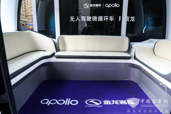 阿波龙在设计上同样颠覆传统汽车概念,全新构建以电动化、电子化及智能化的新形态,是全国首辆无方向盘、无油门、刹车踏板的原型车。车身还采用了RTM轻型复合材料,整体全弧玻璃、宽幅电动门,自动无障碍爱心通道等新材料和工艺。