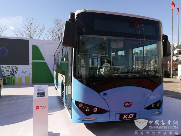 展会现场,比亚迪展出了K7、K8两款精品城市客车,展现了比亚迪在公交运输领域制造高品质纯电动大客车的实力。
