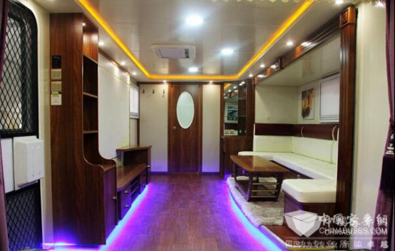 车内多功能折叠沙发床采用的是垂直式床体设计,兼顾沙发与床的功能,合理划分空间格局,给人以第一眼的欣喜,在生活区的空间感和就寝舒适性上做了最大化的设计,U形沙发让旅途生活再添舒适,让空间合理化利用,享受家庭带来的欢乐。