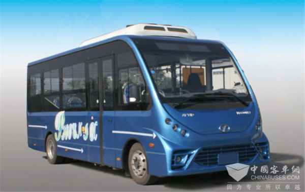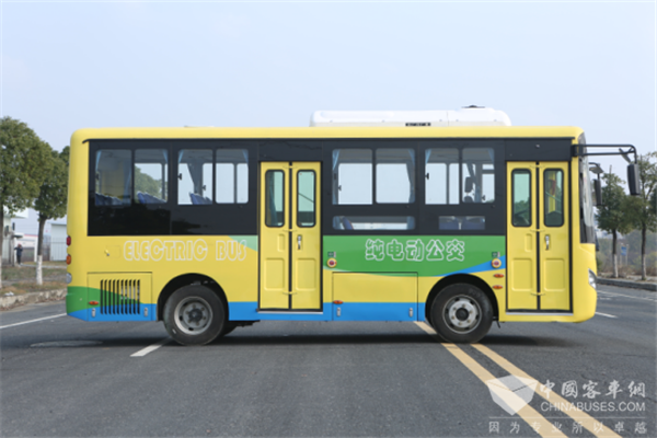 车身采用合金钢,全承载式成型车身骨架,玻璃钢外蒙皮使之抗老化,不易变形,前后轮采用空气悬挂;该车采用永磁同步电机,整车鼓式制动,动力强劲,功率强大,耗电量低;内饰方面,门体采用一级踏板,整车采用铝合金封道,座椅采用侧挂式方式安装。