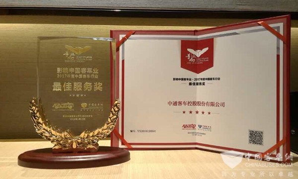 活动当晚,“第12届影响中国客车业年度盘点活动”评选结果正式揭晓,中通客车荣获2017年度“中国客车行业最佳服务”奖,中通LCK6809EVG纯电动客车摘得2017年度“零排放客车之星”。