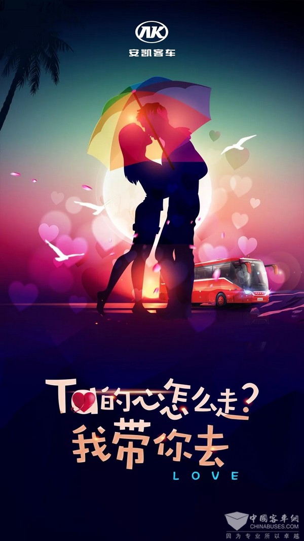 安凯客车紧贴情人节话题,推出“TA的心怎么走?我带你去。”