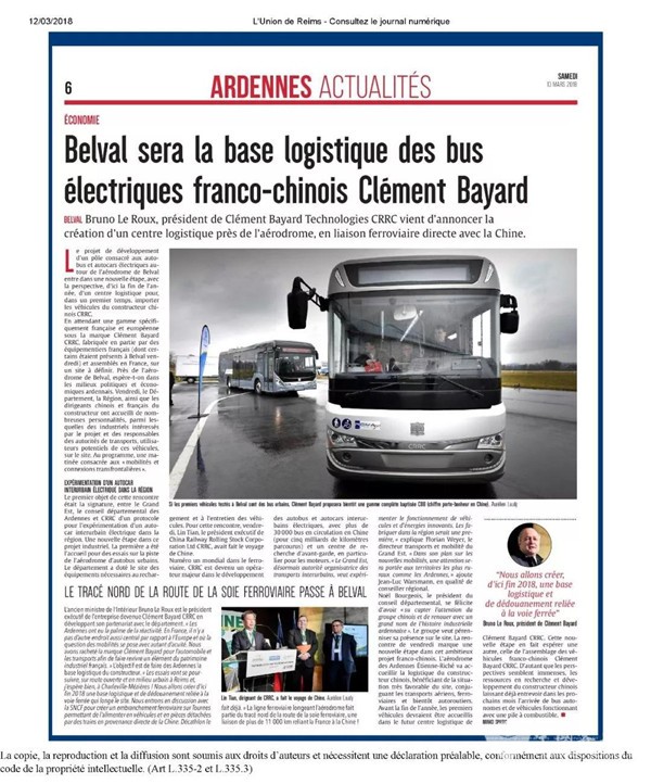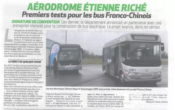 活动中,阿登省政府对中车电动产品给予了高度评价,并与中车电动合作方签署了框架协议,后续将在阿登省进行样车试运行。活动受到了法国阿登电视台、阿登报社等相关媒体的报道。