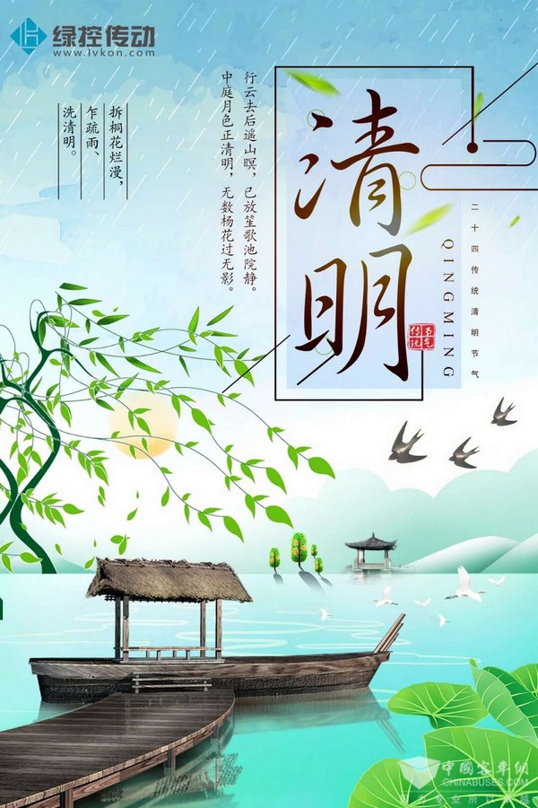 比亚迪客车的清明海报是古风水墨画的杜牧千古名篇《清明》全诗。