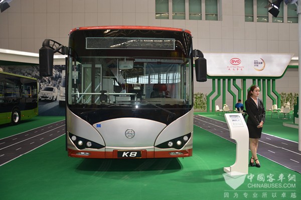 作为全球新能源商用车引领者,比亚迪在本次展会上展出了C8、K7、K8、K9四款纯电动大巴,四款车型采用比亚迪自主研发的轮边驱动系统和电池、电机、电控三大核心技术,皆为经济实用、节能环保的电动大巴。