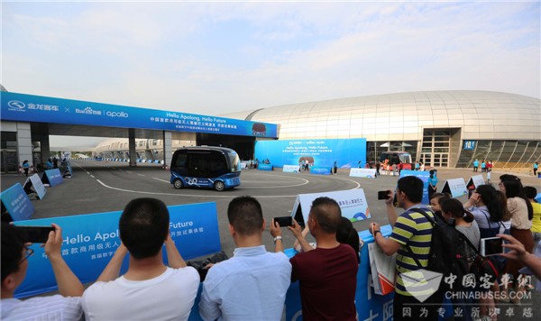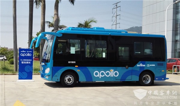 2017年11月16日,金龙阿波龙在百度世界开发大会上正式亮相,作为中国首辆商用级无人驾驶微循环车,百度创始人、CEO李彦宏在主题演讲中表示,金龙阿波龙将于2018年实现商用化量产及上线运营。