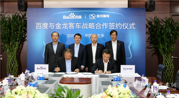 2017年10月17日,百度与金龙客车签署战略合作协议,计划于2018年实现商用级无人驾驶微循环车的小规模量产及试运营,此举将国内自动驾驶量产计划提前了两年,在中国客车乃至汽车工业“智造”的进程中迈出里程碑式的新步伐。