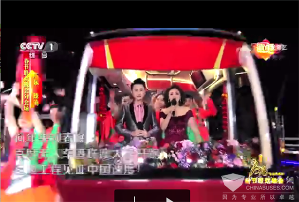在春晚珠海分会场的港珠澳大桥上,央视主持人在金龙阿波龙上主持节目