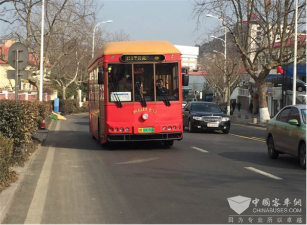 红色涂装的银隆纯电动仿古铛铛车