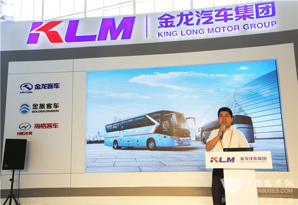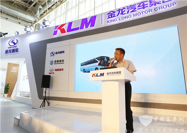 金龙客车国内营销总经理郑小虎推介龙威II代VC版和阿波龙