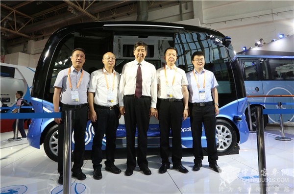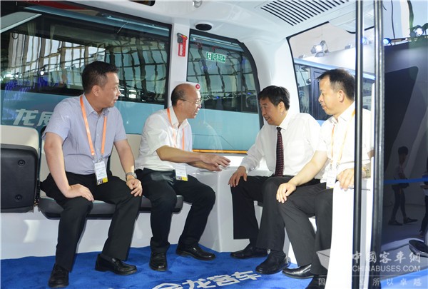 交通运输部党组成员李建波到访金龙客车展位并体验阿波龙