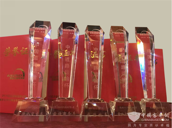 在2018道路运输车辆展上,福田欧辉凭借其品牌、产品、技术实力,获得2018年度中国道路运输杯五项大奖。其中,BJ6122双风挡城间客车荣获2018年度最佳公路客车奖;BJ6117纯电动城间客车荣获2018年度最佳新能源客车奖;6802城间客车荣获2018年度最佳商务车奖;BJ6105氢燃料城市客车荣获2018年度最佳公交客车奖;BJ6781校车荣获2018年度最佳校车奖。打好品质提升攻坚战,针对市场需求,与客户产生更多的共鸣,为客户提供切实所需的高品质产品。
