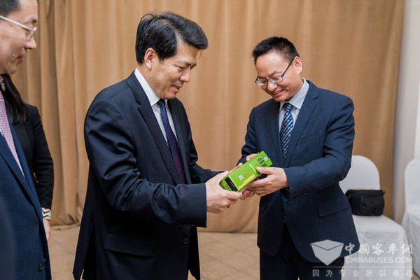 宇通客车向大使赠送车模型