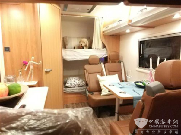 好的产品是普及房车发展的根本,以上汽大通RV80 C型新款房车为例,其结合了新一代房车消费者的实际需求,在智能舒享、人性化设计、绿色环保、安全保障等方面进行了产品升级。在智能舒享方面,作为首款搭载智能平台房车,开启智能互联时代,其智能娱乐终端能够通过无线网络和物理连接的方式,实现数字多媒体(高清视频,音频,图片)内容的网络、本地、USB口等的播放;可以双向同步不同屏幕的音、视频内容;可以通过APP实现远程控制等一系列操作;可以通过麦克风语音控制、查询导航路线、天气情况、播放音乐、视频等。在人性化设计方面,全面提升双人卡座乘坐舒适性,是国内行业首个符合M1类法规要求的ISOFIX座椅;对标国外C型房车工艺及布局,采用由内至外装配工艺,提高品质感;在绿色环保方面,整车材料高环保要求,车内空气有害物质(苯和甲醛)含量均≤0.1mg/m3,达到欧洲同类房车水平,可满足北美房车绿色环保体系认证。在安全保障方面,全车轻量化、高耐久性设计,外饰件采用高品质环保玻璃钢、国内首例吸塑外饰工艺、高强度铝型材等材料,在国内行业中占据领导者位置。