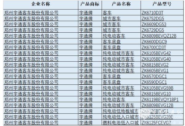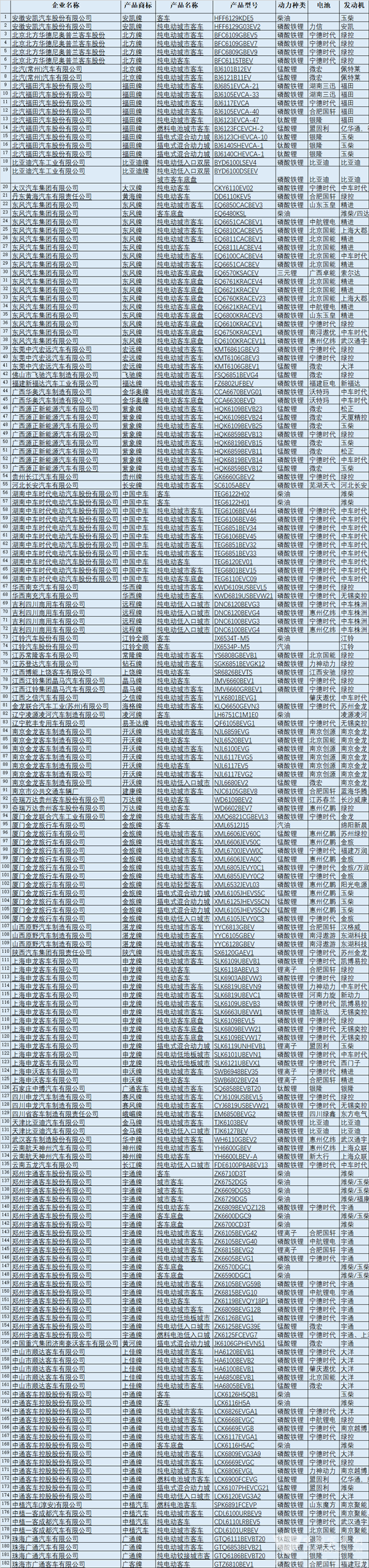 从客车品牌看,宇通客车申报20款客车,位列榜首;东风客车申报15款客车(其中8款客车底盘),位列第二;申龙和中通客车分别申报13款客车,位列第三;金旅客车申报12款产品,位列第四;中车电动申报11客车产品,位列第五; 福田欧辉申报9款客车,位列第六;广西源正、中山顺达分别申报8款、5款,位列第七、第八。另外,北方客车、比亚迪、金龙客车、海格客车、吉利四川、山西原野、珠海银隆等都有多款产品申报。