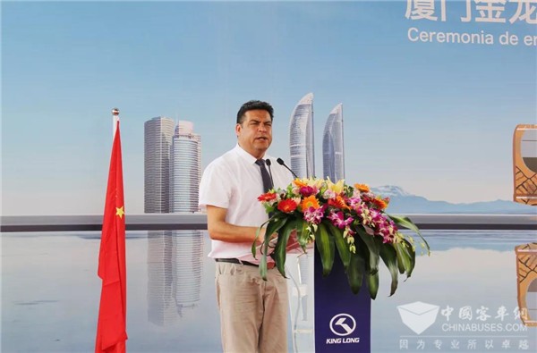 8月10日, “更美出行,更美风景——金龙客车出口玻利维亚交车仪式”在厦门现代码头隆重举行。玻利维亚首都拉巴斯市市长路易斯·雷比亚万里迢迢率领代表团亲临厦门迎接他们的出行“老朋友”——第三批交付玻利维亚的金龙客车。仪式现场,厦门市副市长李辉跃向拉巴斯市市长路易斯·雷比亚交接了金钥匙,并对拉巴斯城市提升共公交通服务以及与金龙客车深化战略合作表示祝贺。