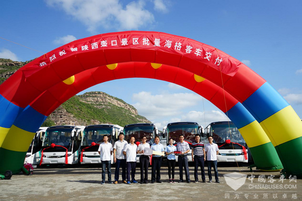 “这一次总共引入了34辆旅游景区用车,全部系海格客车精心打造,将在后期用于满足景区演艺演员出行、游客接待等需求”,采访中,陕西壶口景区旅游汽车客运有限公司副总经理李江泳表示,随着壶口景区知名度打响,加强景区用车规范管理,提升景区用车服务是趋势,也是景区服务品质向上的表现。