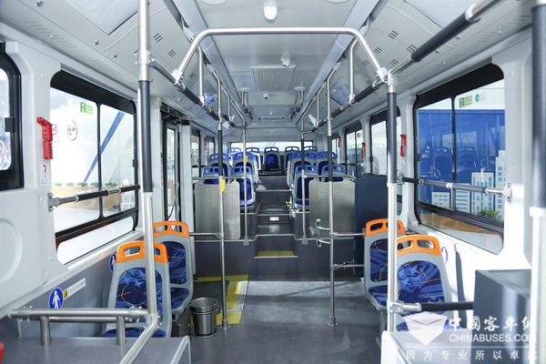 K7定位在一、二线城市支线及三、四线城市干线公交运营,全新K7拥有8米和8.5米两款车型,均搭载大功率驱动电机,电池能量密度及单位载质量能耗满足国家最高1.21倍补贴标准。此外,全新K7车内空间宽敞,优化了座椅布局,增大了站立面积,带来更优越的驾乘体验。