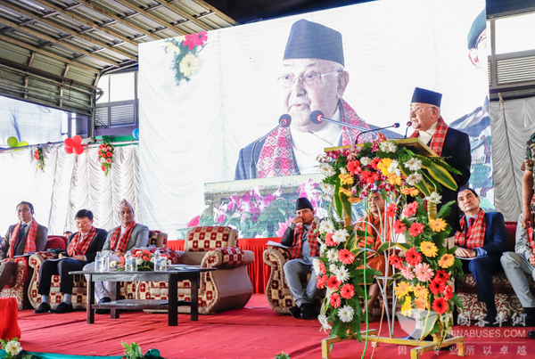 奥利总理在尼泊尔首批纯电动巴士C6交付仪式上致辞,中国驻尼泊尔大使馆临时代办张帆等出席。