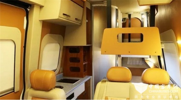 亚星欧睿采用全承载车身,其舒适性好、噪音小,全承载车身设计实现车内空间最大化。车厢配置上,整体风格温馨带有豪华,座椅采用皮质包裹,同时副驾驶的座椅可向后旋转,在旅途生活中可以与车厢中的乘客面对面的沟通。车内配置上,厨房炉灶、双人床、卫生间、冰箱等房车基本功能都有配备,短期短途出游完全没有问题。