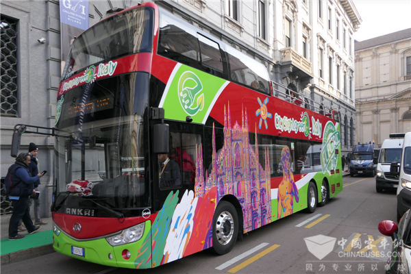 安凯纯电动双层敞篷客车亮相意大利街头