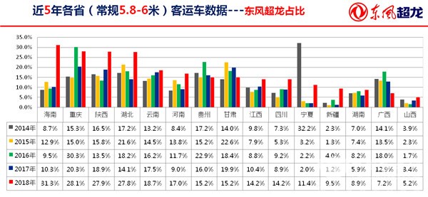 东风超龙在各省的农村客运市场占有率