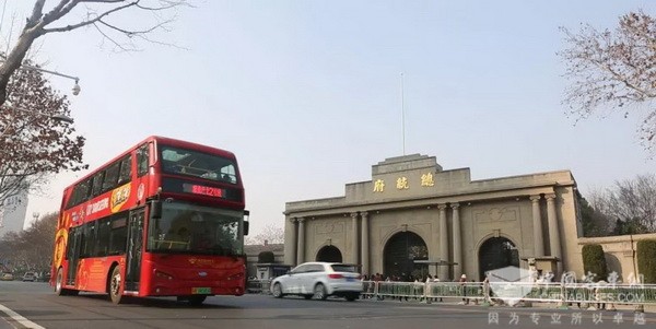 南京街头随处可见的红色双巴,正是开沃G10纯电动双层观光巴士。