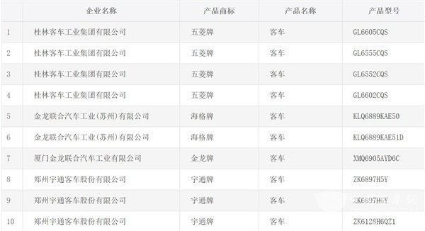45款客车产品入工信部第317批新产品公示