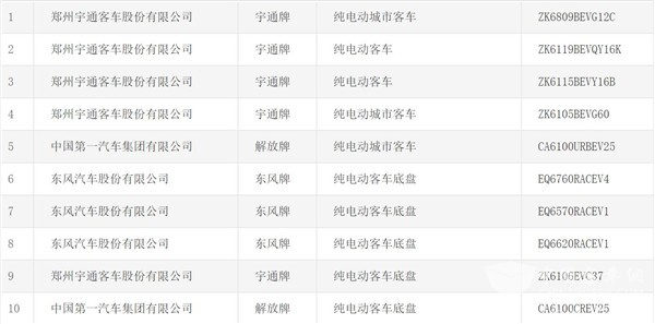 从产品企业上看,宇通客车共有19款车型上榜,再次彰显了其作为行业领头羊的强大实力;东风汽车股份有限公司有六款产品榜上有名(包含三款底盘产品);其余上榜企业车型均不足5辆。