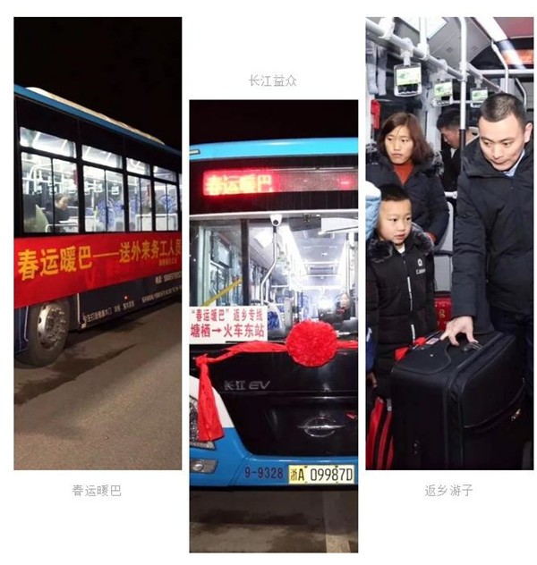 2019年2月1日,余杭公交首趟来往塘栖与杭州东站的“返乡专线”正式发车,送游子踏上温暖的回家路。考虑到乘客回乡行李较多,老人、小孩乘车不便,余杭公交为此次任务选用的正是长江“益众”公交车:它不仅拥有宽敞且排布合理的内部空间,低入口的踏板设计让携带大件行李上下车不用那么费力,座椅上的薄绒,为寒冷的冬日平添一份温度,轮椅专用空间也为特殊人士出行创造更多可能。这专属于长江电动公交车的安静、平稳、舒适的乘车体验获得了乘客朋友们的广泛认可,让他们的返乡第一程惬意又轻松。