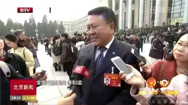 当天,在人民大会堂东广场,全国政协委员、北汽集团党委书记、董事长徐和谊接受了中央电视台、北京电视台、中国汽车报等多家媒体的采访。