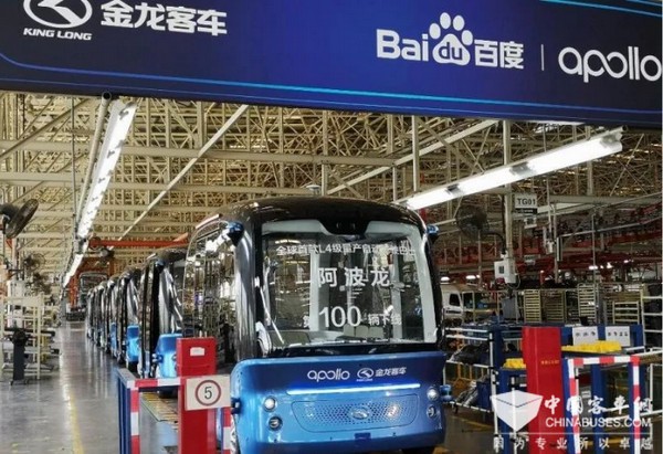 2018年7月4日,百度携手厦门金龙客车共同研发的全球第一款搭载Level 4自动驾驶技术的量产型巴士车“阿波龙”正式下线。厦门金龙客车宣布,这是Apollo第100辆L4级别的自动驾驶巴士的下线。