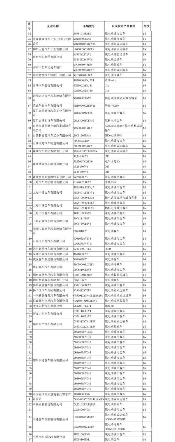 同时,工信部发布计划从《免征车辆购置税的新能源汽车车型目录》中撤销的车型名单中包括156款新能源车型,其中客车77款。