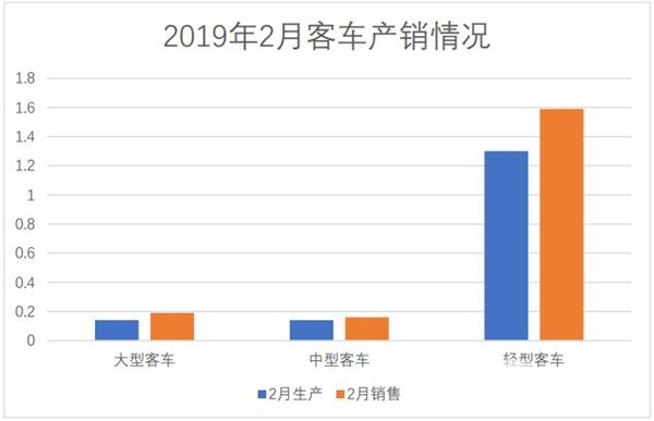 总体而言,在2019年2月的客车市场,主要受春节假期影响,与上月相比客车产销均有较大幅度下滑;与上年同期相比,销量略增,产量下降较快。