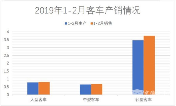 根据中汽协会统计,2019年1-2月客车产销4.90万辆和5.24万辆,同比下降15.55%和4.12%。
