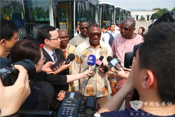 亲眼看到即将远赴塞拉利昂的崭新客车,塞拉利昂贵宾十分高兴,并给予了高度肯定。塞拉利昂公交总公司副总经理保罗·塔克介绍,这批新车将投放在弗里敦多条不同线路上,作为校车接送孩子上下学。在此之前,当地没有专门的官方校车,孩子上下学十分不便,安全也难以保障。新车交付后,将由弗里敦公交总公司统一运营。塞拉利昂交通部副部长萨迪科·希拉在交车仪式上说:“长久以来,塞拉利昂人民和总统阁下,一直有一个梦想,那就是通过加大对公共设施和人力资源的投入,来促进和提升塞拉利昂的教育质量。今天,是一个值得纪念的日子。这50台金旅校车的生产和交付,将加快实现塞拉利昂人民长久以来的期待和梦想。”
